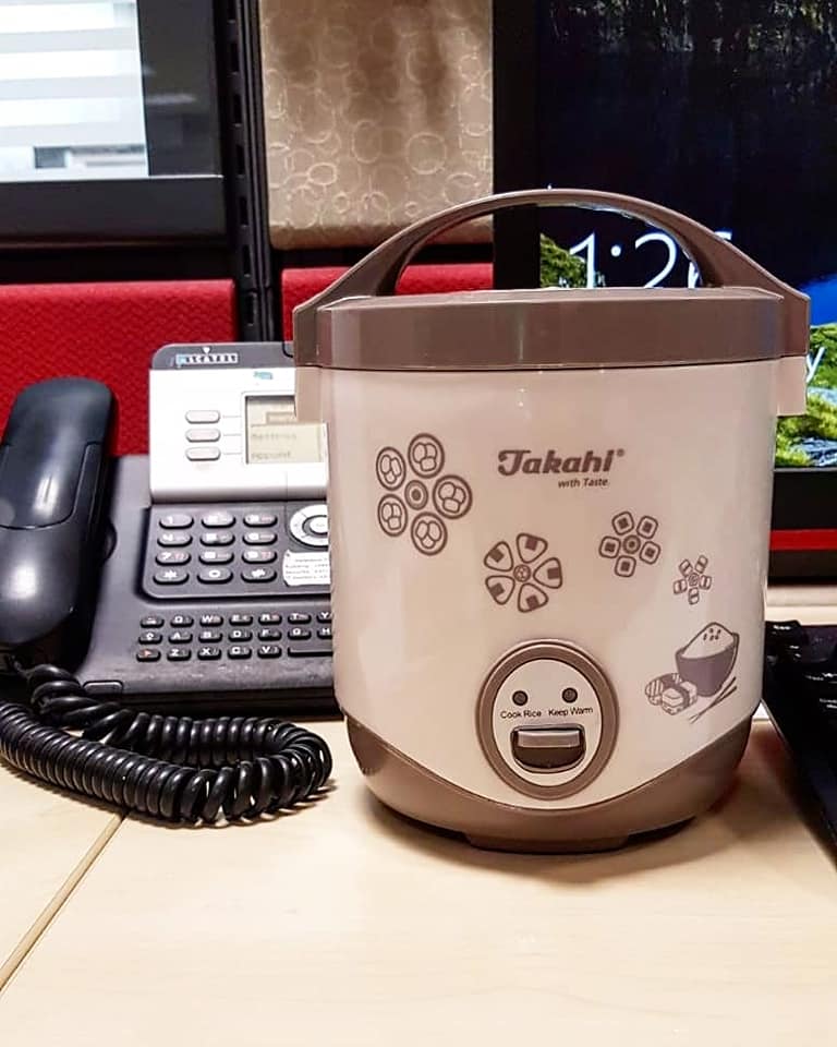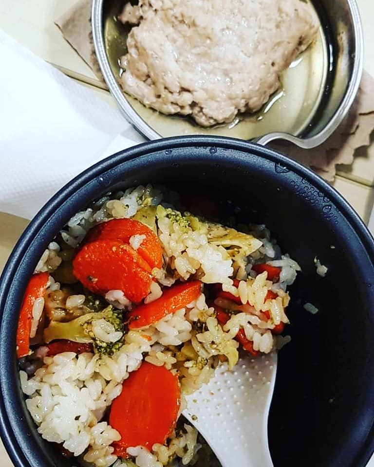 Proud of my model client, Quee Ching. She bought a rice cooker and cooks her lunch at her office desk everyday. Thankfully her office has a fridge where she can keep fresh veg/meat for cooking. I applaud such company which allows staff to cook and provides a good pantry. She is so inspiring that I thought her case is worth sharing to motivate office ladies who find it hard to eat out healthily.